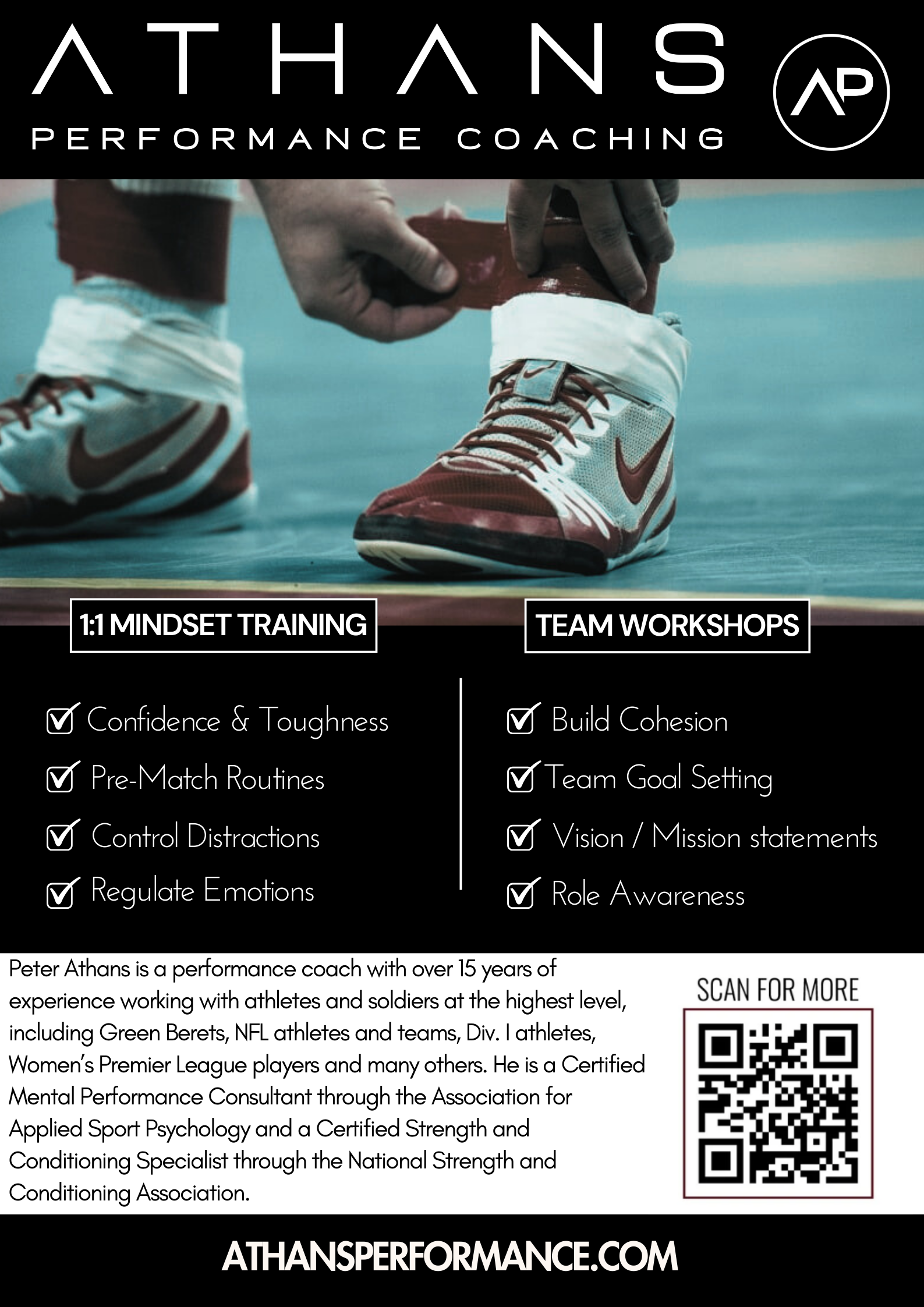 Triumph Wrestling is proud to partner with Pete Athans Mindset. All coaching and performance programs provided by Athans Performance LLC are independently operated.